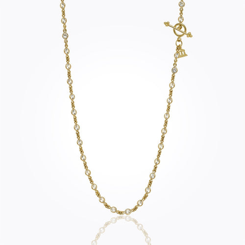 18K Classic Longchain Necklace with faceted white sapphire - 16"