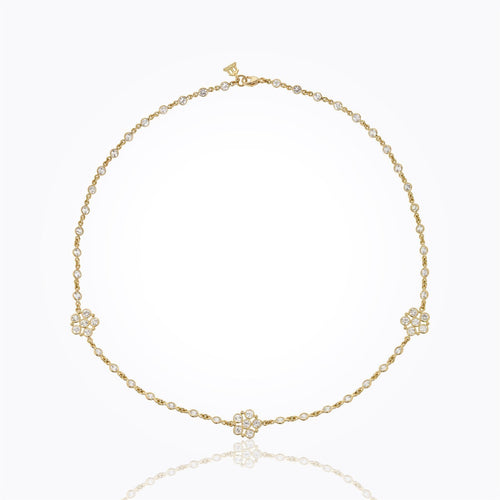 18K Daisy Long Chain with rose cut and faceted white sapphire