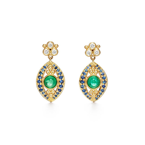 18K Evil Eye Drop Earring in blue sapphire, emerald and diamond