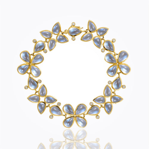 18K Flower Cluster Bracelet with royal blue moonstone and diamond