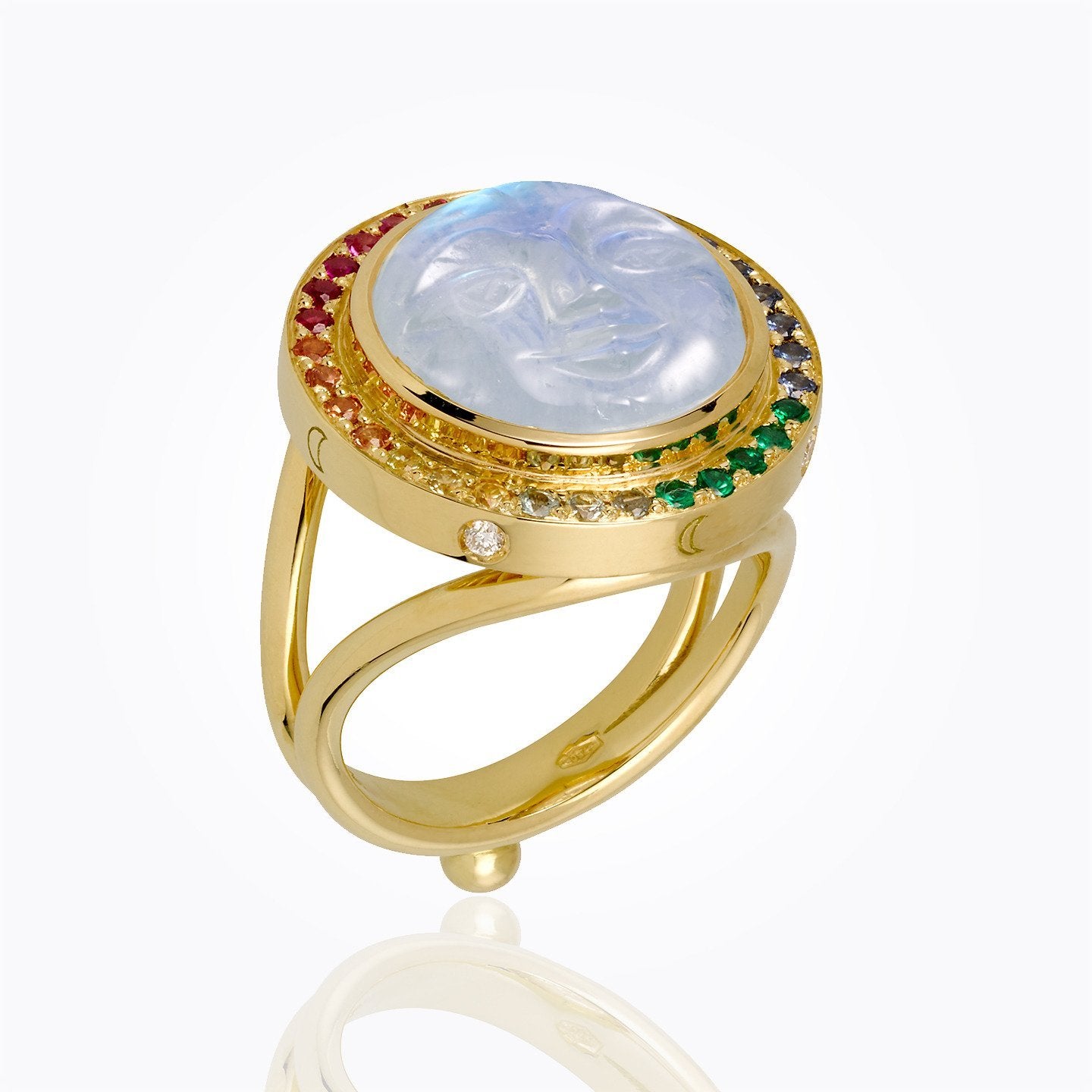 18K Astrid Ring with Blue Moonstone Face and mix color sapphire