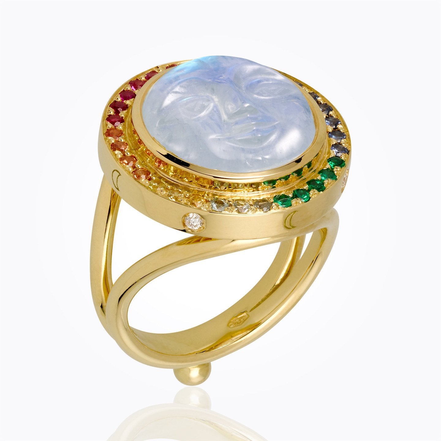 18K Astrid Ring with Blue Moonstone Face and mix color sapphire