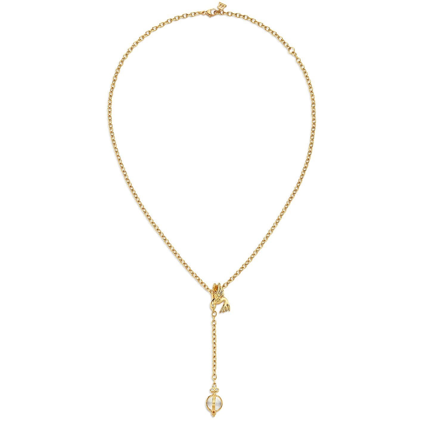 18K Bird Necklace with Crystal Y-Drop