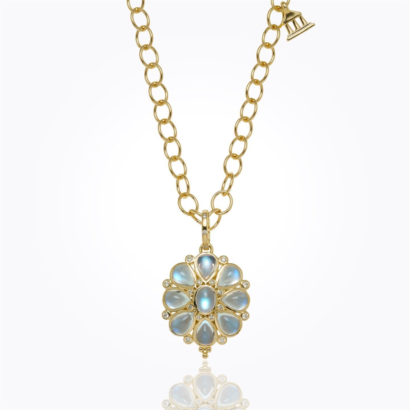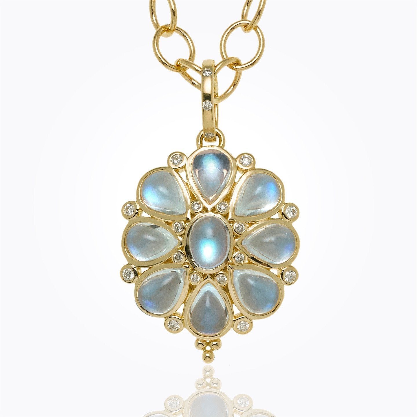 18K Blossom Pendant with Royal Blue Moonstone and diamond