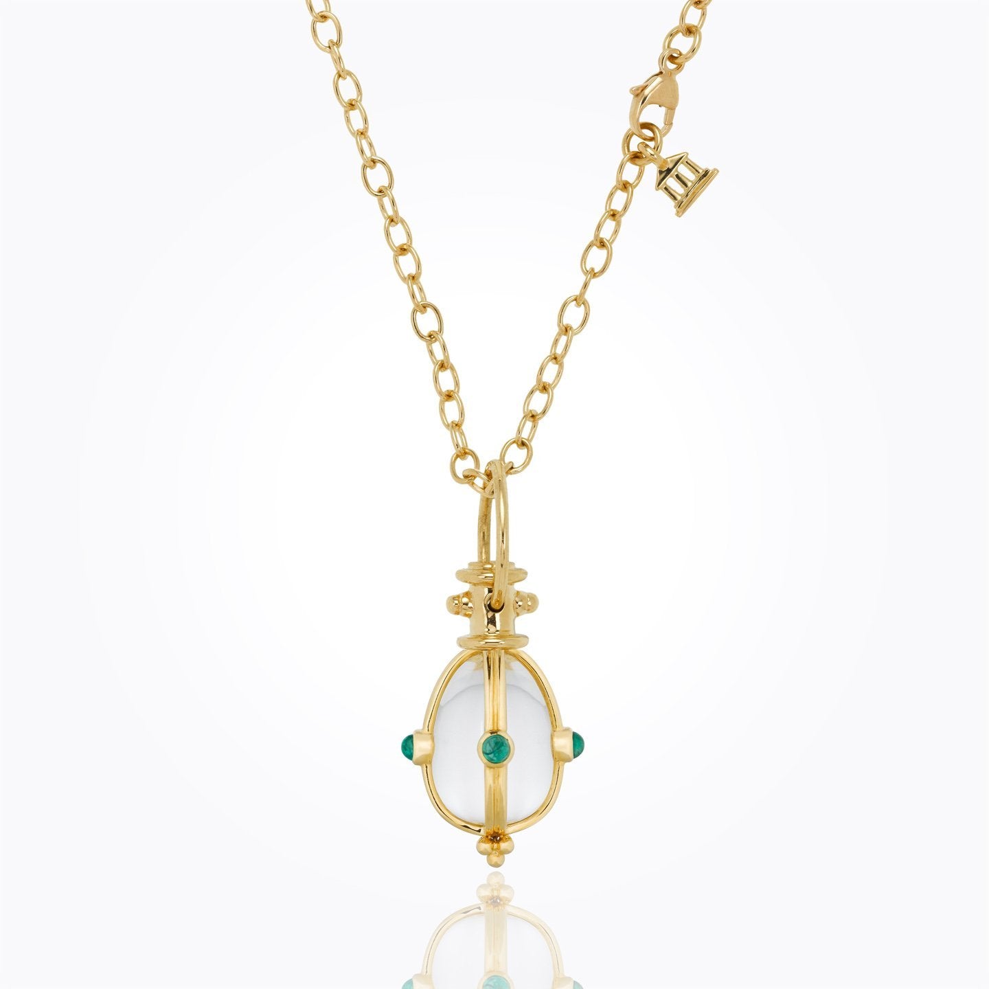 18K Classic Amulet with oval rock crystal and cabochon emerald