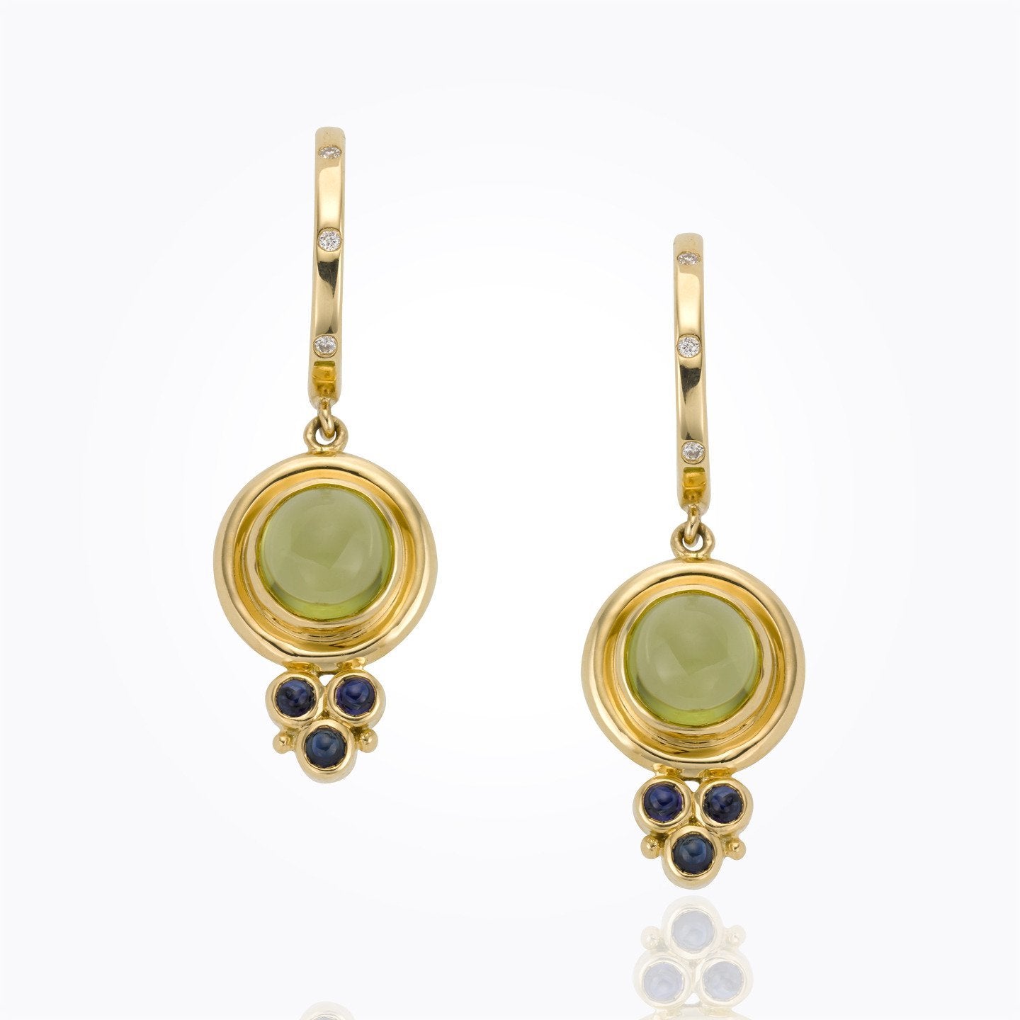 18K Classic Cabochon Round Earrings with diamond and blue sapphire granulation