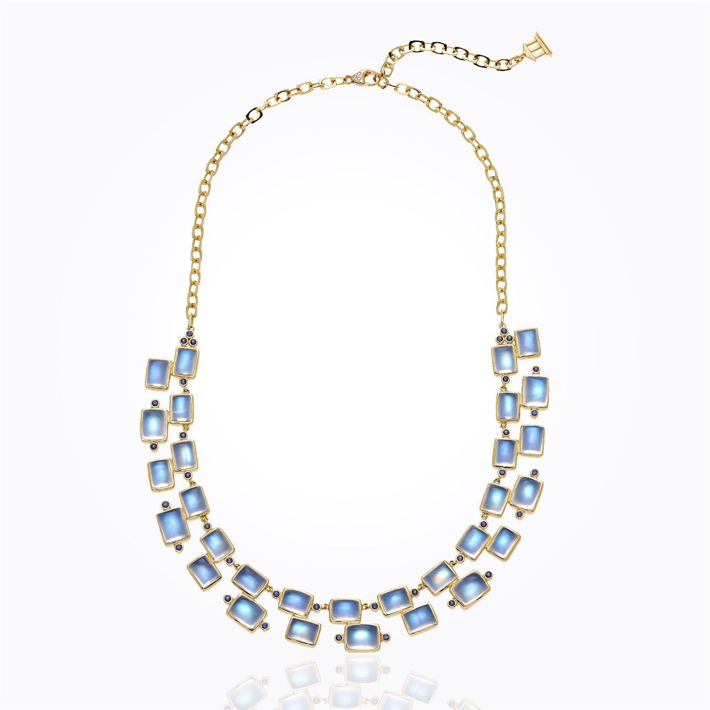 18K Cleo Necklace with royal blue moonstone and blue sapphire