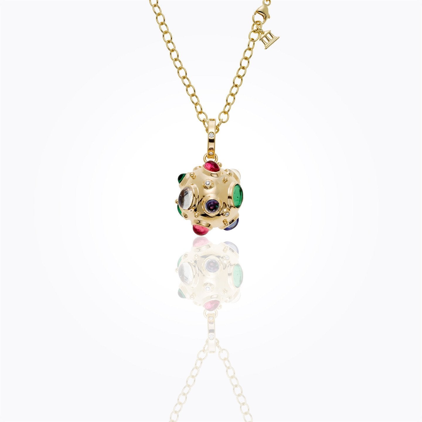 18K Cosmos Pendant with royal blue moonstone, tsavorite, tanzanite, pink tourmaline and diamond