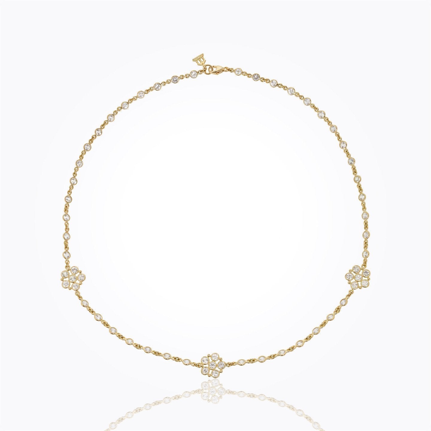 18K Daisy Long Chain with rose cut and faceted white sapphire