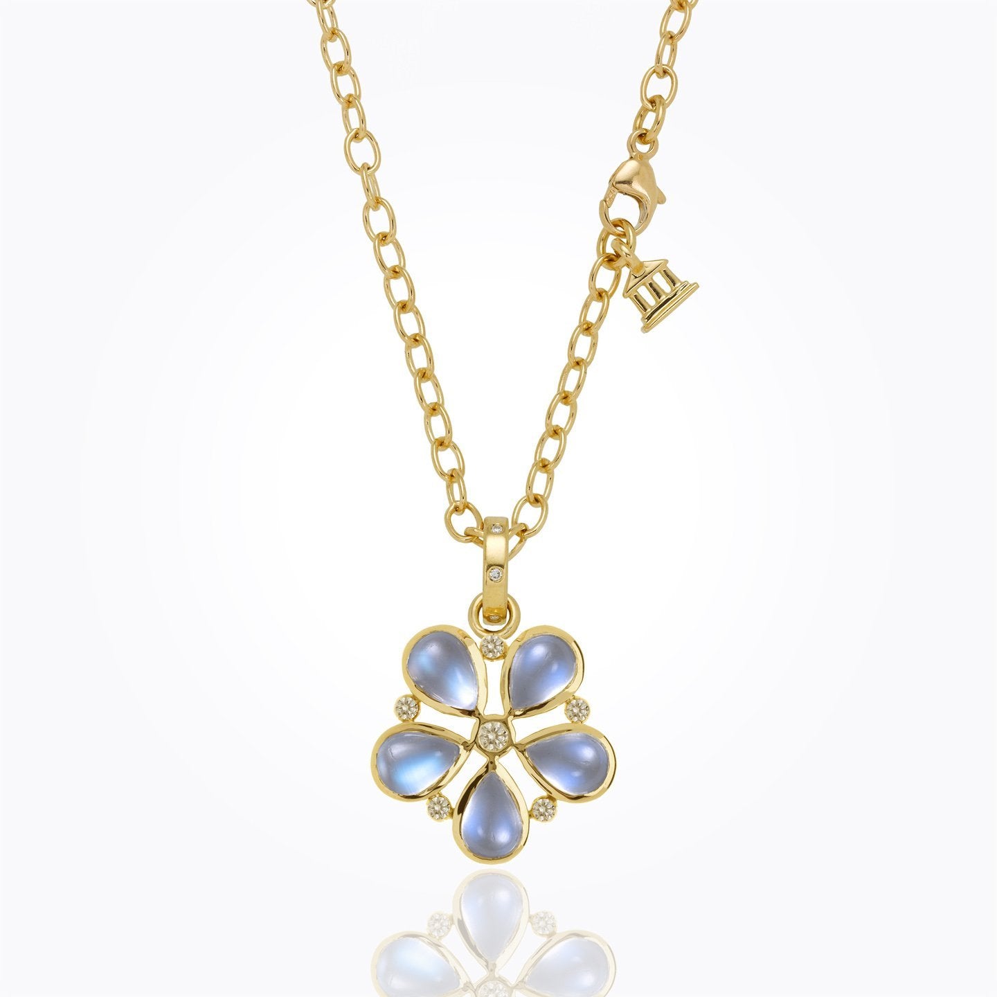18K Flower Pendant with royal blue moonstone and diamond