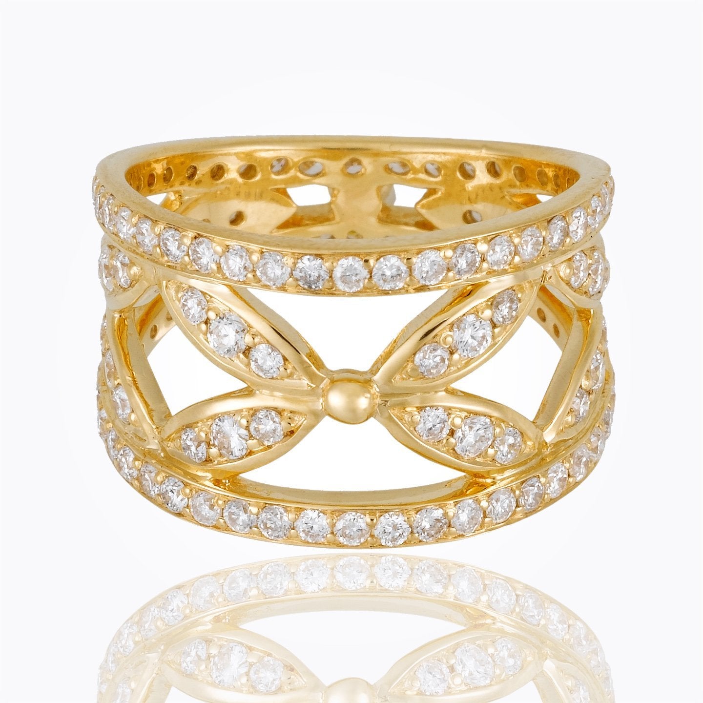 18K Foglia Ring with diamond pavé